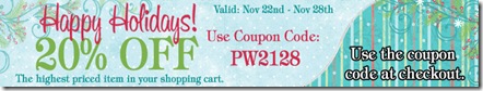 Take 20% off your highest price item using the above coupon code.